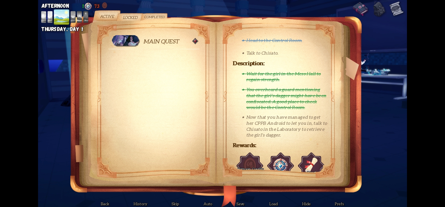 Presiona el botón de “atrás” hasta antes de hablar con Kathryn y vuelve a hablar con ella. Por alguna razón, no te apareció la daga.